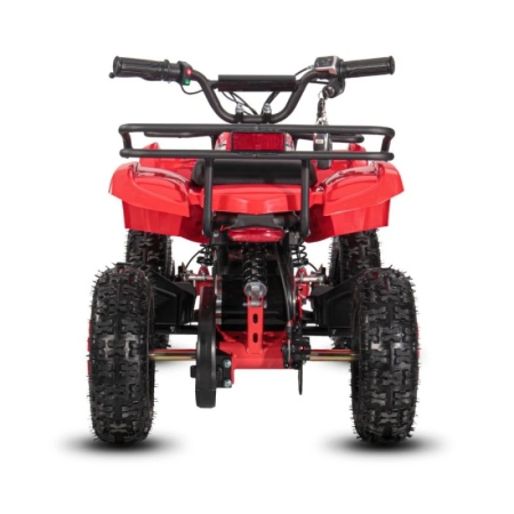 Электроквадроцикл устойчивый на ровной поверхности. Дает возможность максимального разгона, начального понимания скорости и участии в дорожном движении наравне с остальными райдерами. При мощностных параметрах электродвижка 1000 Вт максимальная скорость разгона достигает 25 км/час. Электроквадроцикл оснащен большой светодиодной фарой, разрешающей езду и развлечение подрастающего водителя в вечернее время и проблематичную погоду.