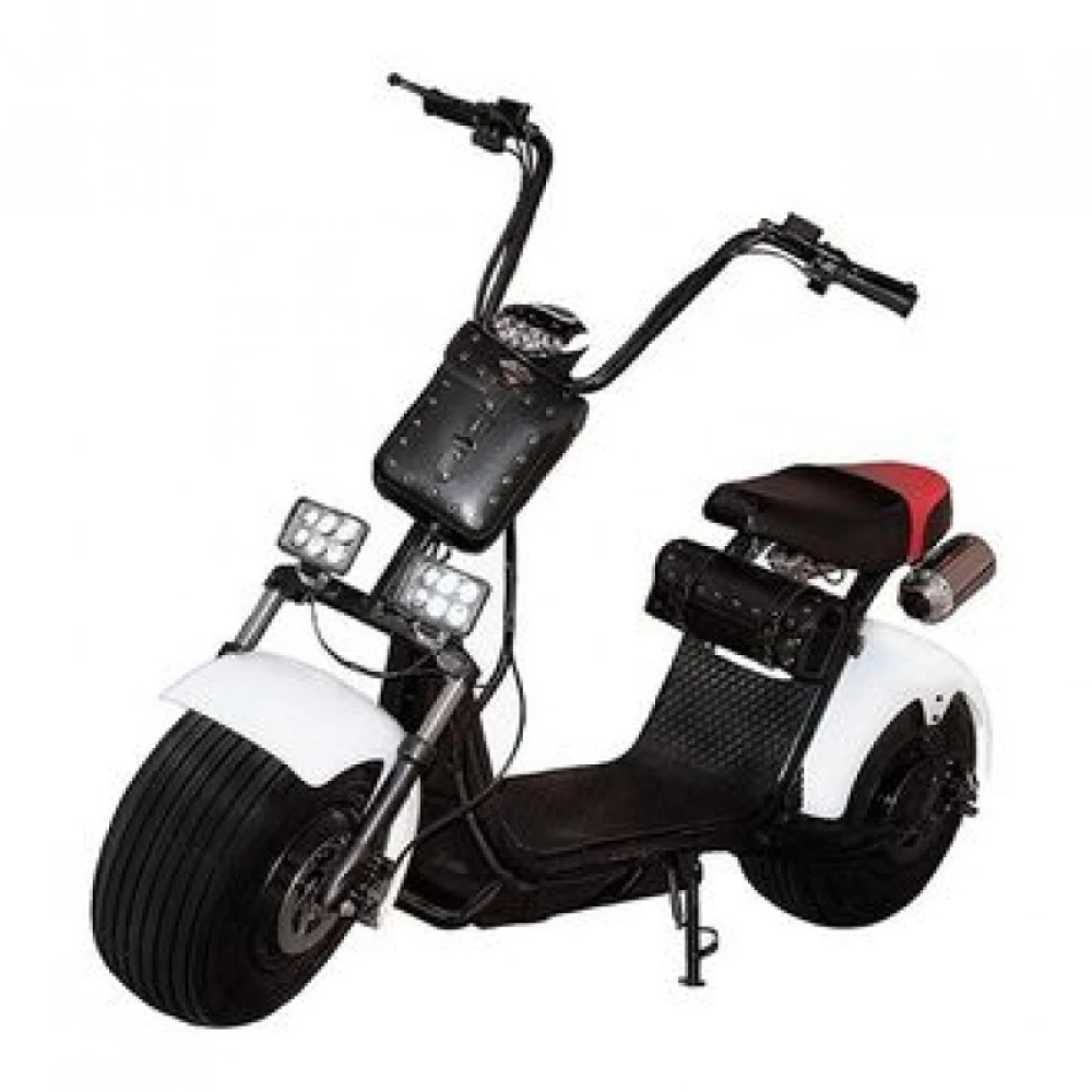 Скутер Citycoco имеет дисковую тормозную систему, Внешнее освещение кроме основной фары дополнено двумя светодиодными квадратными фарами. Основным отличием от многих моделей линейки скутеров Citycoco, является наличие глушителя. Он воспроизводит звук мотора.
