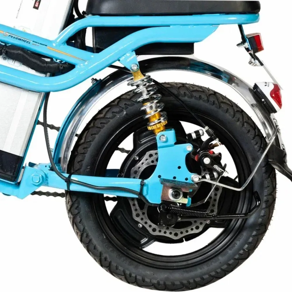 Модель оснащена 14-дюймовыми колесами, механической тормозной системой и амортизаторами, которые в сочетании обеспечивает высокое качество и плавность езды в разных условиях эксплуатации. Для заказа электровелосипеда предлагаем связаться с нами по телефону или в онлайн-режиме. Ждем ваших звонков!